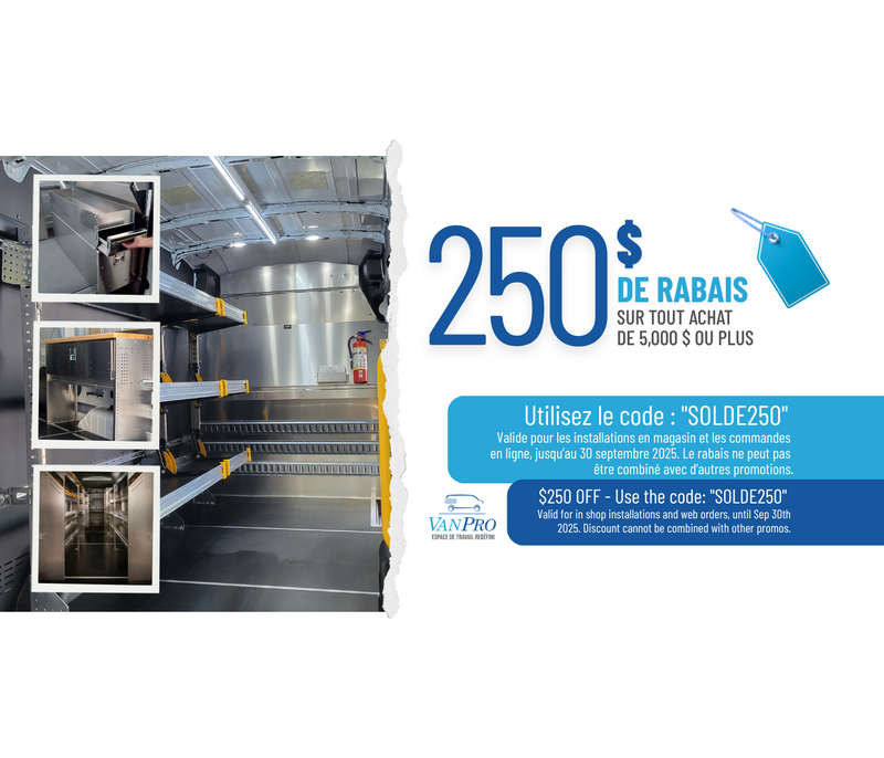 View full detailsWe receive impeccable service from the entire Van Pro Team. Quality products that meet the needs of our commercial customers, a proactive service with rigorous follow-ups and a great sense of urgency to serve us well.